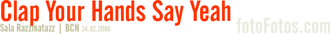 también destacan Grizzly Bear y Animal Collective. Como una mezcla de Yo La Tengo, The Feelies, Neutral Milk Hotel y Talking Heads, la música de Clap Your Hands Say Yeah suena extremadamente nueva, eufórica, elegante y nerviosa. Su indie rock melódico es exuberante y extremadamente más original que el de todos esos hypes que intentan ser los nuevos Velvet Underground. Tan auténticos y estetas como aquellos, dicen que sus conciertos son su punto fuerte. Si 2005 ha sido el año de The Arcade Fire, ya sabemos de quién será 2006. Sólo queda aplaudir. Yeah! |